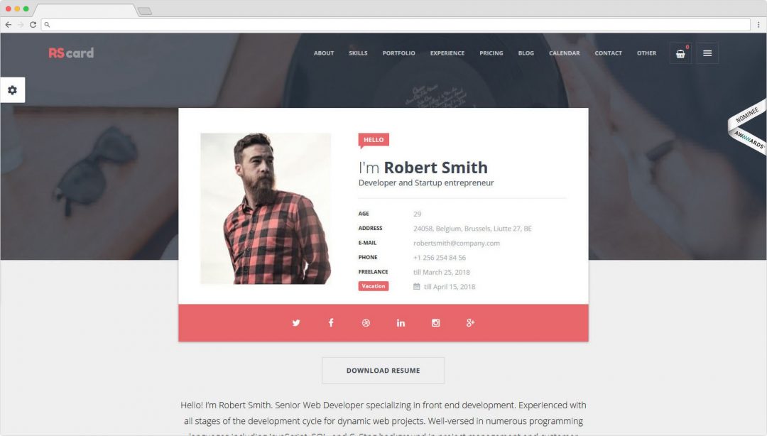 Templified RS Card WordPress vCard Theme