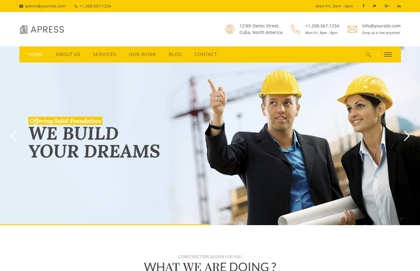 Apress Construction Company WordPress Theme with Bold Style