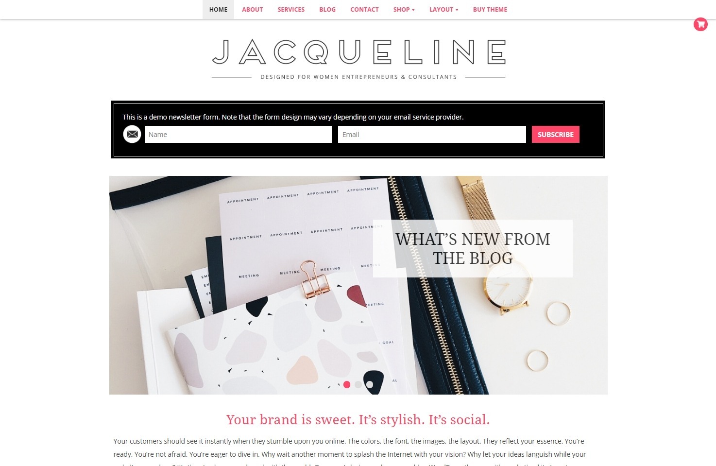 Jacqueline, Feminine WordPress Theme for One Page Sites